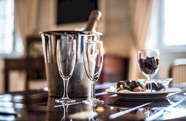 - fein abgestimmtes Weinmenu (1gl. Weißwein, 1/2fl. Rotwein, 1gl. Dessertwein p.p.)