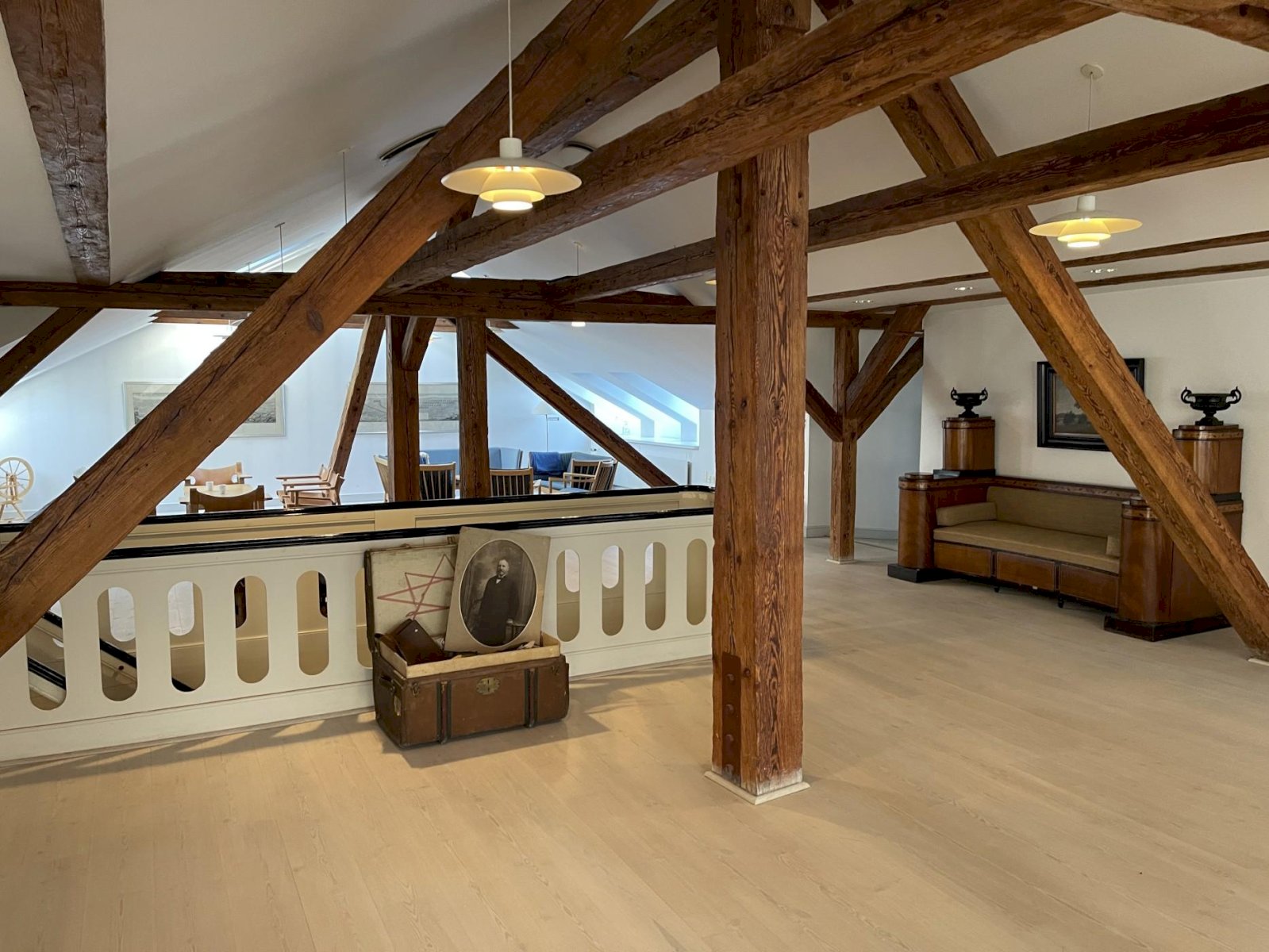 Et dejligt lyst mødelokale under bjælkerne - særdeles velegnet til det mere private møde med en mindre gruppe. Også herfra er der direkte adgang til Risalitten, som kan bruges i pausen og til Gruppearbejde.
